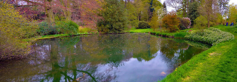 Помимо живых изгородей и цветников немалую часть сада занимают пейзажные сады. Два водоема, как ключевые элементы дизайна, обеспечивают круглогодичный интерес к этой части сада. Весной здесь во всем своем великолепии предстают многочисленные луговые травянистые растения, в летнее время эстафету цветения подхватывают пышные рододендроны, а осенью спокойные воды прудов отражают нарядную окраску краснеющей листвы. Из хозяйственных построек заслуживают внимание конюшни, магазин керамики ручной работы, мастерская и антикварный книжный магазин.